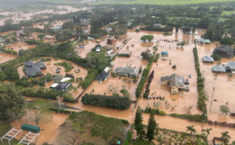 莫大な被害をもたらしたハワイ全島 今年の雨期は最悪の熱帯低気圧に襲われ 特にオアフとマウイ島が大変だったね。 もちろんハワイ島も地区によっては 洪水や土砂崩れで見るも無残な被害である。 An MH-65 Dolphin