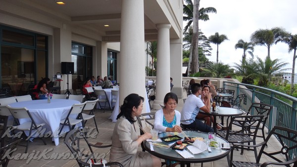 道沿いのテラスと