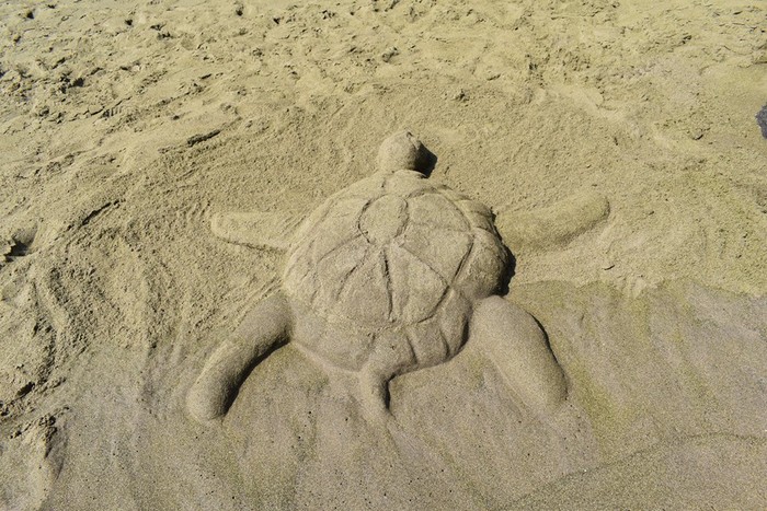 波に濡れると緑色に染まる